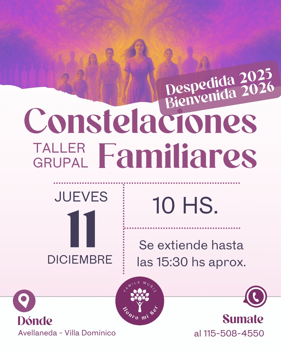 No, quédate tranquila. No necesitás saber nada sobre constelaciones familiares. De todas formas yo te voy a estar mandando un video a través de WhatsApp unos días antes del taller para contarte algunos detalles de mi forma de trabajar.