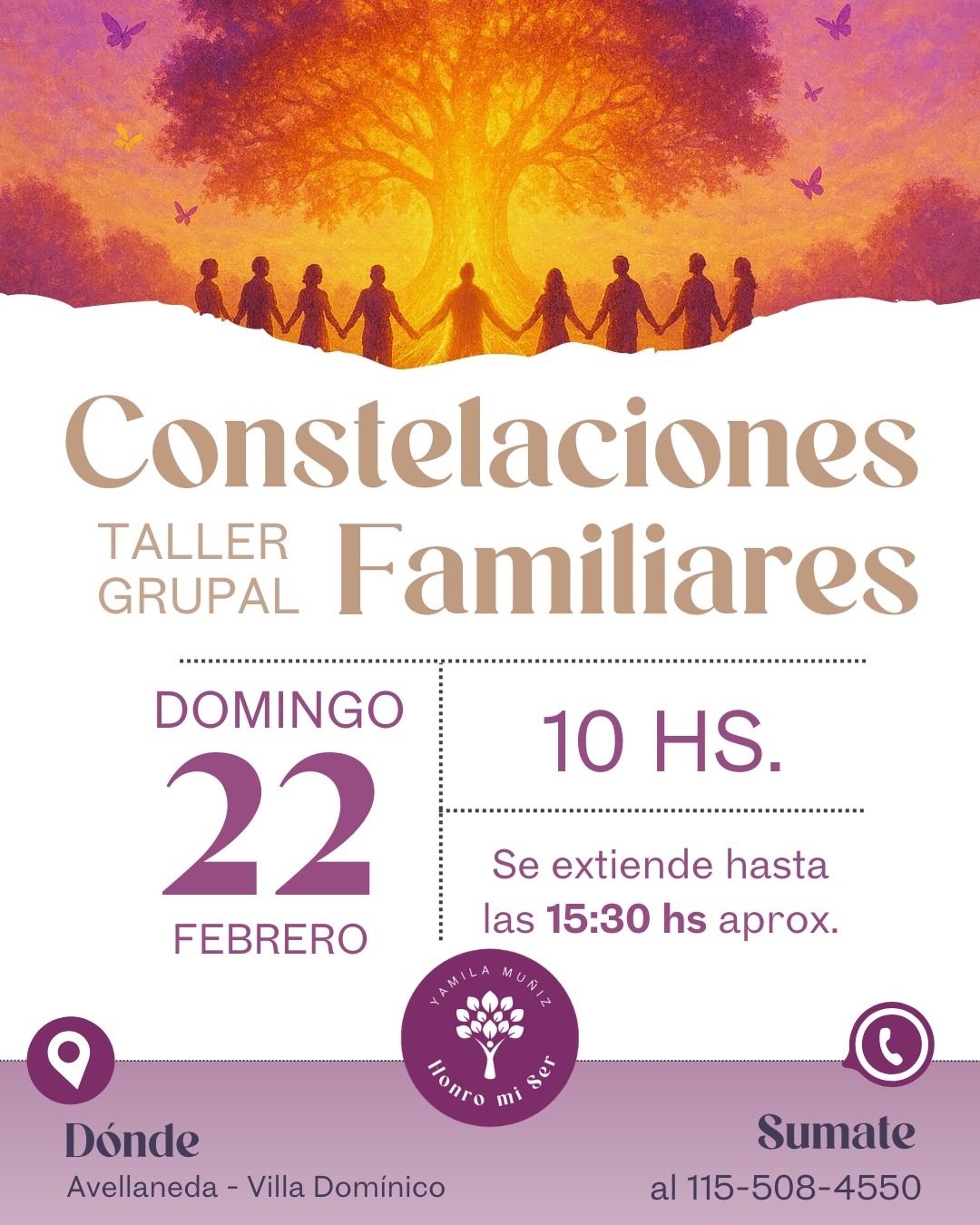 El simple hecho de que estés presente en el taller ya te va a permitir mover energía y estar trabajando un tema que tenga que ver con vos (tu historia personal) o con algo de tu sistema familiar, seas consciente o no. Es lo maravilloso de la energía.